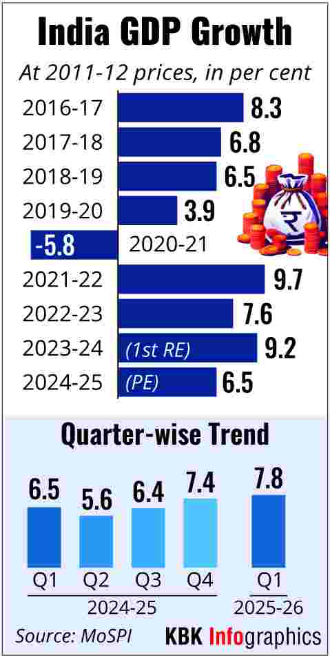 જૂન ત્રિમાસિકનો વિકાસદર આશ્ચર્યજનક 7.8 ટકા, સવા વર્ષમાં સૌથી ઊંચો